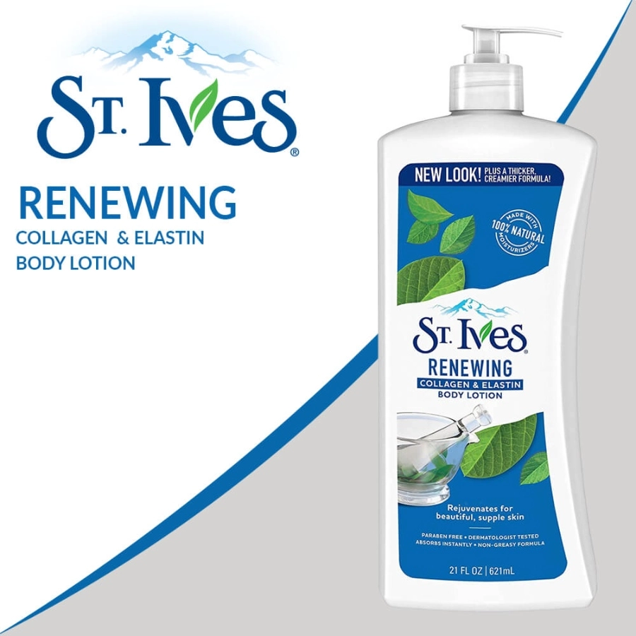 یک راه ساده برای مراقبت از بافت انواع پوست، استفاده از لوسیون و کرمهای مرطوب کننده و آبرسان پوست است. لوسیون بدن بازسازی کننده پوست Renewing از برند محبوب سینت ایوز، حاوی مواد مرطوب کننده طبیعی، از کلاژن و الاستین جهت آبرسانی عمیق و جوانسازی پوست های خشک عرضه شده است.فرمولاسیون این محصول به گونه ای طراحی شده که به سرعت جذب پوست گردیده و موجب احساس چربی بر روی پوست نمی شود.