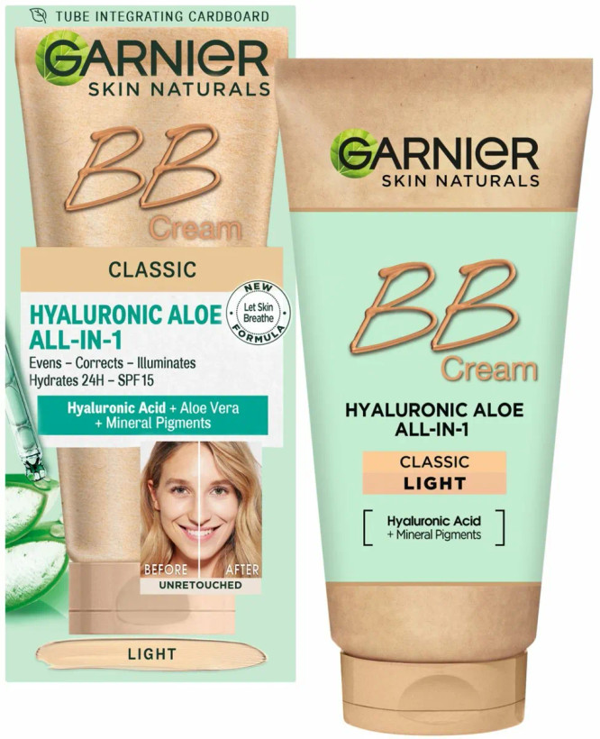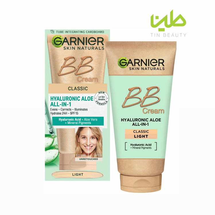 بی بی کرم کلاسیک Hyaluronic Aloe گارنیه یک کرم چند منظوره مناسب انواع پوست است، در ترکیبات این محصول ضدآفتاب، کرم پودر، و کانسیلر بکار برده شده است. این بی بی کرم میتواند تمام عیوب پوست را کاور کند و جلوه ای صاف و یکدست به پوست دهد. همچنین در ترکیبات این بی بی کرم مرطوب کننده هم بکار برده شده است، که مانع از خشکی پوست شده و بافت پوست را آبرسانی ، شاداب و با طروات میکند. این بی بی کرم فاقد روغن است. بی بی کرم کلاسیک انواع پوست Hyaluronic Aloe گارنیر دارای عصاره آلوئه ورا می باشد که باعث خنکی میشود و در عین حال عملکردی ضد جوش دارد و از التهاب پوست جلوگیری میکند و همچنین پوششی یکدست و مات را روی پوست ایجاد میکند.