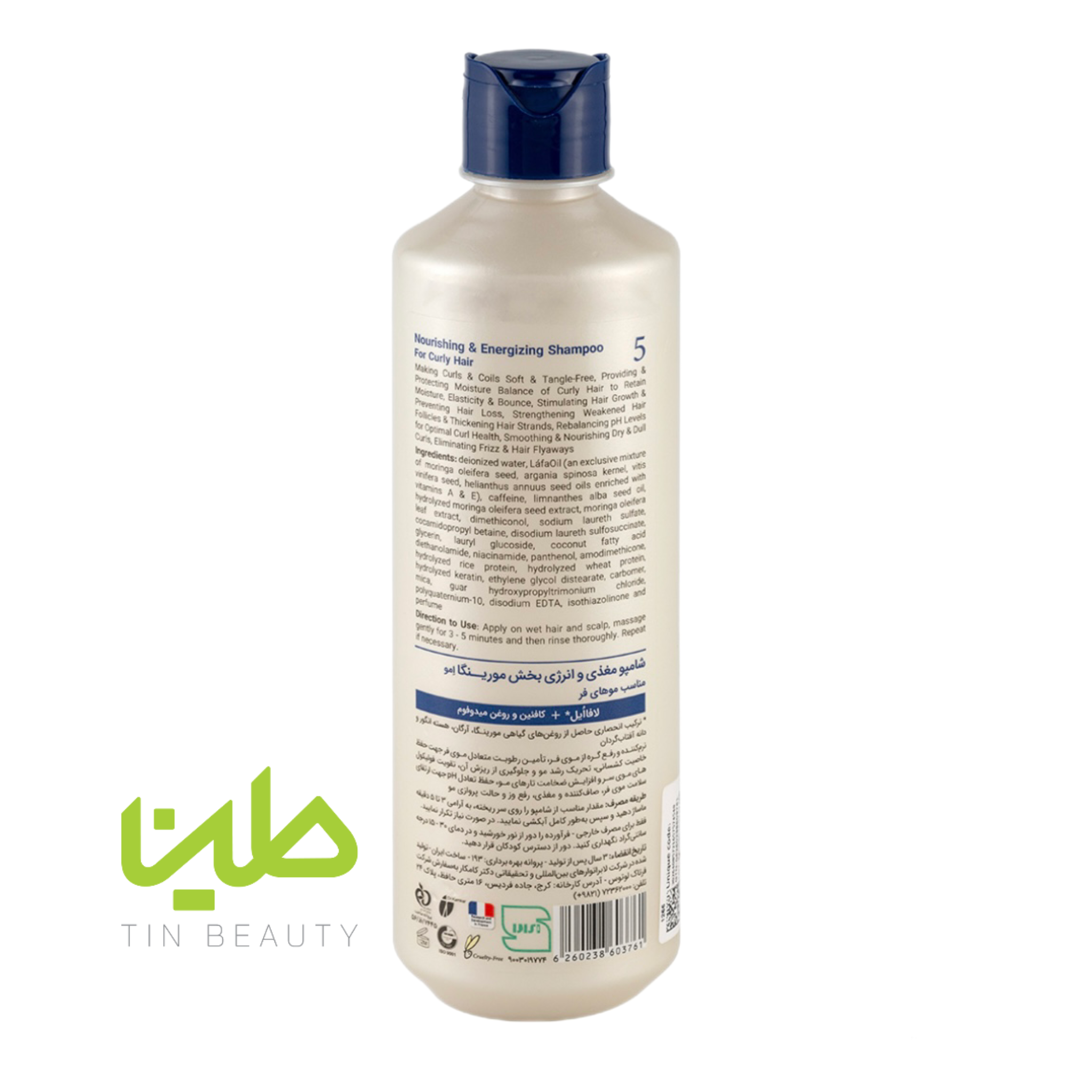 کسانی که به طور ذاتی موهای فری دارند میدانند که استفاده از یک شامپوی مناسب و مرغوب چه تاثیری در بهبود حالتگیری و خوش فرم ماندن فر فریهای زیبای مویشان دارد. شامپو محافظ فر مو مورینگا ضمن پاکسازی موها و پوست سر از آلودگیها و چربیها با فرمولاسیون موثر خود به حفظ حالت طبیعی موهای فر کمک زیادی میکند. از آنجاییکه موهای فر معمولا میزان رطوبت کمتری را در خود نگه میدارند شامپو موی فر مورینگا به گونهای طراحی شده است که موجب آبرسانی و حفظ رطوبت مو شده و در افزایش نرمی و لطافت آن تاثیرگذار است. شامپو مورینگا شماره 5 حاوی لافااویل، روغن میدوفوم و کافئین بوده، به رفع خشکی و وز مو کمک کرده وگردش خون موضعی کف سر را بهبود میبخشد. این محصول با افزایش رطوبت رسانی و تقویت ساختار مو به جلوگیری و کنترل ریزش مو کمک میکند. شامپو مخصوص موهای فر مغذی مو بوده و با جلوگیری از گره خوردن موها در بهبود حالتپذیری آنها موثر است. لافاایل ترکیبی انحصاری شامل روغنهای گیاهی مورینگا، آرگان، هسته انگور و دانه آفتابگردان و ویتامین A و E بوده و در ترمیم و بازسازی موها نقش بسزایی دارد. خاصیت آنتی اکسیدانی این شامپو از موها در برابر رادیکالهای آزاد و عوامل مخرب محیطی مانند اشعه UV و آلودگی هوا محافظت کرده و در افزایش درخشندگی و شفافیت موها تاثیر مثبتی دارد.