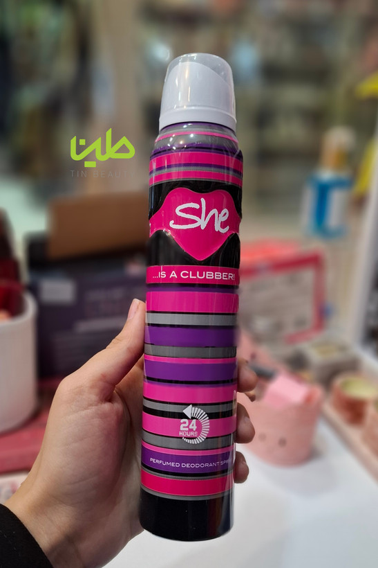 اسپری زنانه کلابر شی رایحه ای گلی و خنک به بدن می دهد که زمان زیادی باقی مانده و از ایجاد بوی بد بدن جلوگیری می کند.