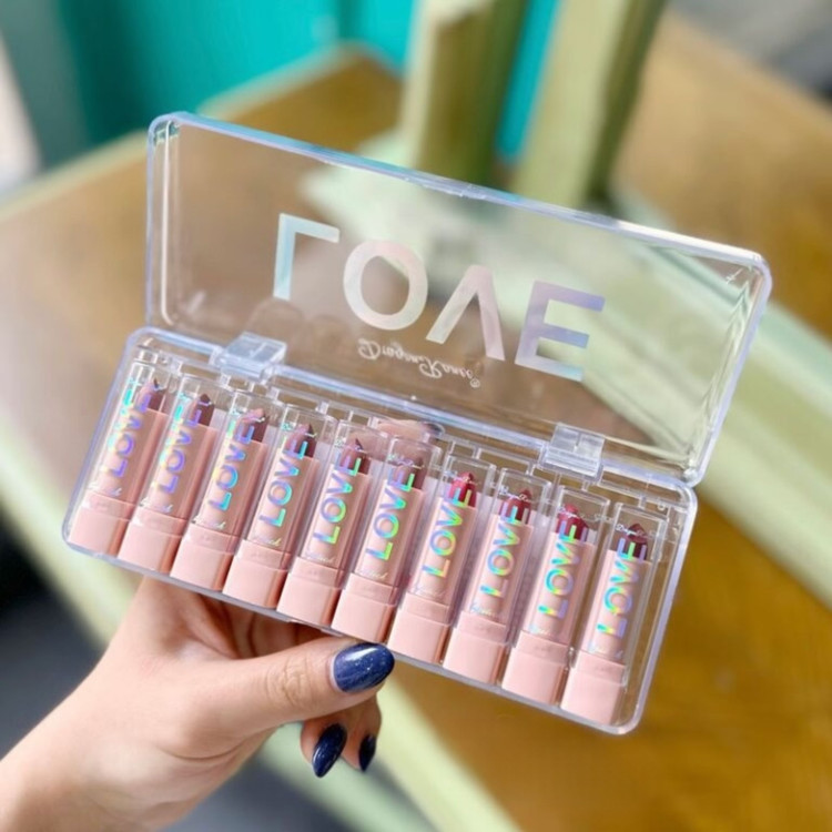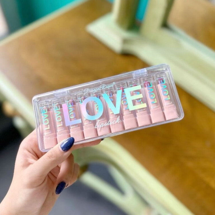 پک رژلب جامد مینی Dragon Ranee مدل LOVE شامل ده رنگ رژلب بسیار زیبا و خاص است که همگی در یک پک کوچک و قابل حمل قرار دارند. این رژلب ها بافتی نرم با فینیش مات دارند که برای هر تناژ پوستی و آرایشی کاربرد دارند.
